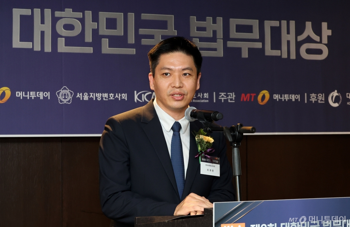 이재환 한국사내변호사회 회장이 11일 서울 중구 더플라자 호텔에서 열린 '제8회 대한민국 법무대상'에서 축사를 하고 있다. 독자들의 PICK! 5년 전 사라진 걸그룹 리더 폭로…"빚쟁이라며 인터넷방송 시켜" 최정윤, 5살 연하 사업가와 깜짝 재혼…"딸, 첫 만남에 아빠라 불러" 故정은우 "형동생 했던 것들에 뒤통수"...지인에 남긴 문자 "저 남자, 네 엄마랑 불륜" 아빠 이 말에...17살 소년, 이웃 총기 살해