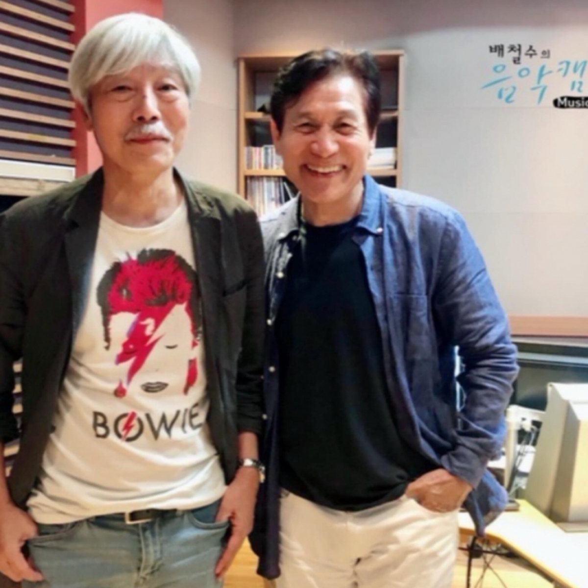 사진엔 안성기가 MBC라디오 '배철수의 음악캠프' 부스를 방문한 모습이 담겼다. 배철수와 함께 나란히 서서 주머니에 손을 넣은 포즈를 취한 안성기의 인자한 미소가 눈길을 끈다.