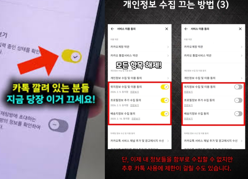 최근 SNS에는 '카카오톡 2월 11일까지 '이거' 안 끄면 개인정보 다 털립니다'라는 내용의 릴스와 게시물 등이 퍼지고 있다.