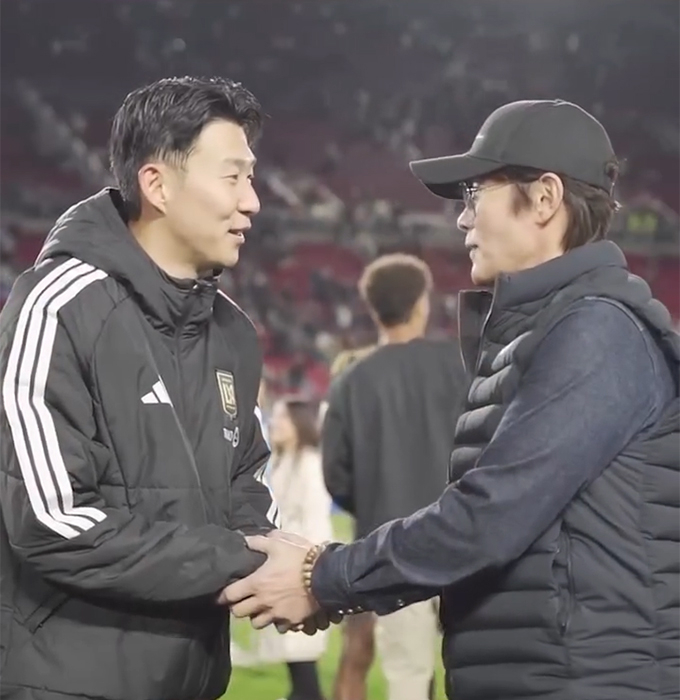 이 영상에는 이날 로스앤젤레스 메모리얼 콜리세움에서 열린 LA FC와 인터 마이애미와의 경기 이후 그라운드에서 이병헌과 손흥민이 함께 인사를 나누고 이야기하는 모습이 담겼다.