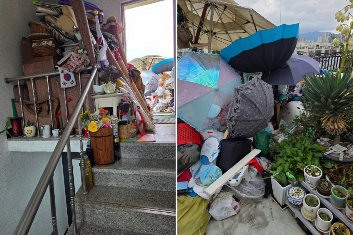 관련 사진을 보면 빌라 옥상에 수많은 물건이 질서 없이 마구잡이로 쌓여있다. 옥상에는 원목 가구를 비롯해 선풍기, 우산, 화분 등이 가득해 발을 디딜 수 있는 공간 찾기도 버거워 보였다.