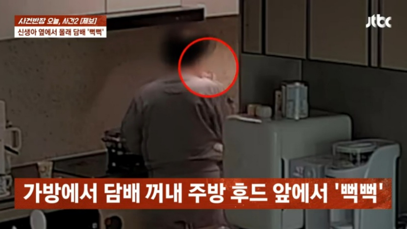 거실에 홈캠이 설치돼 있다는 것을 안내받았던 산후도우미는 카메라를 등지고 주방 후드를 가장 세게 튼 뒤 흡연했다. 그가 라이터로 담배에 불을 붙이는 모습이 주방 타일에 반사돼 비치기도 했다.