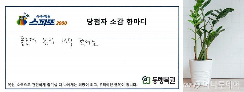 A씨 부모는 "집에서 키우는 금전수가 올해 유난히 눈에 띄게 잘 자라고 있어 왠지 좋은 일이 있을 것 같았다"며 "이런 행운이 올 징조였던 것 같다"고 기뻐했다.