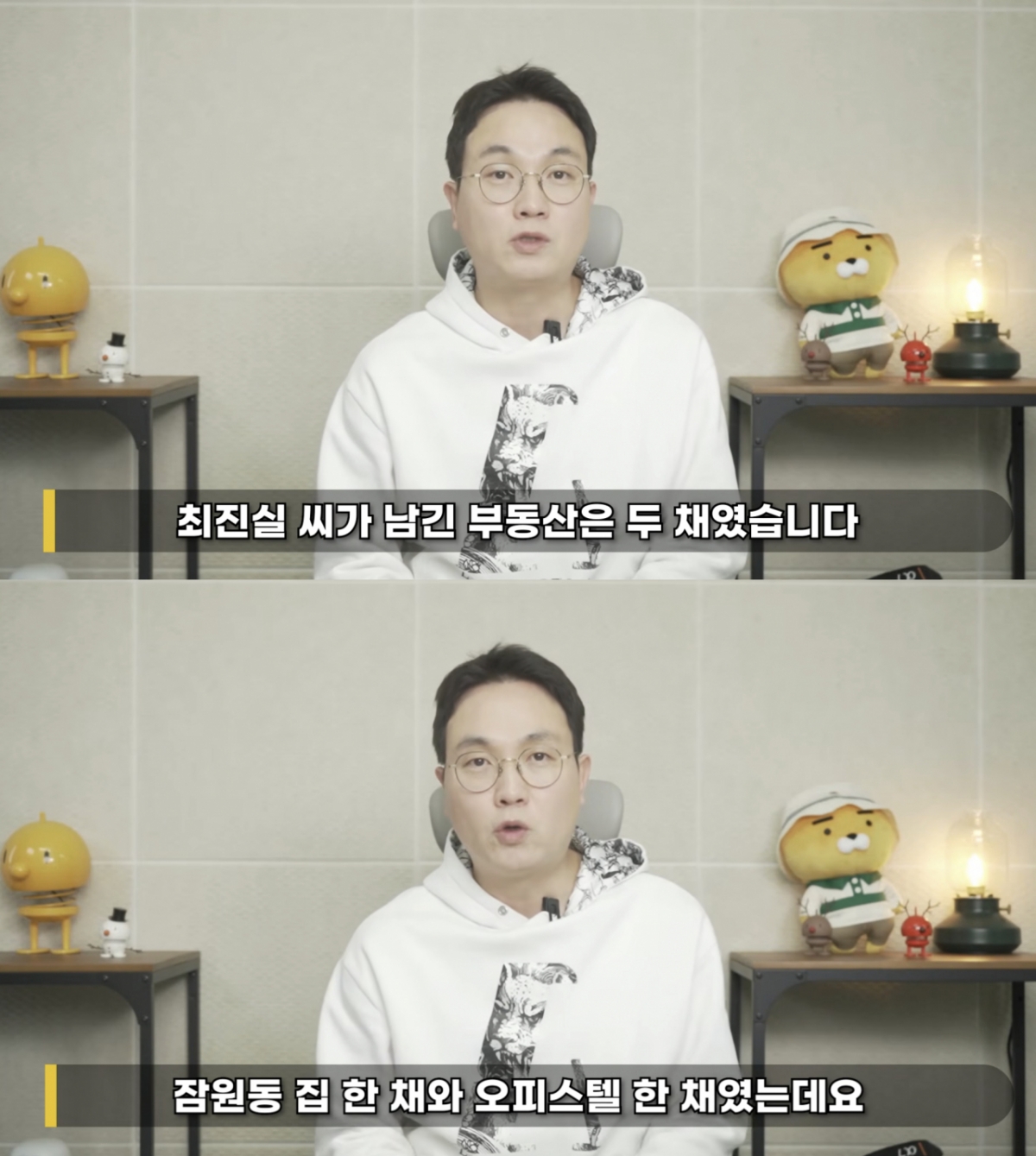 결국 최진실의 유산은 부동산 두채였다. 잠원동 집 한 채와 오피스텔 한 채로, 이는 아들과 딸에게 각각 50% 지분으로 상속됐다. 월 임대 수익은 약 1500만원 선으로 최진실의 아들 최환희, 딸 최준희에게 각각 돌아가고 있다고 했다.
