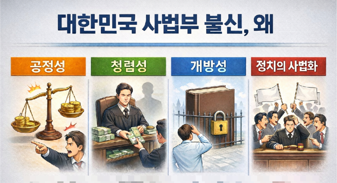전 세계적으로 사법 제도 수준이 높은 편으로 평가받는 대한민국 사법부가 국내에서는 평가 절하를 받는 이유에 대해 법조계에서는 재판 당사자가 체감하는 공정성·청렴성·개방성 때문이라는 설명이 나온다. 여기에 더해 최근 심화하고 있는 정치의 사법화가 불신을 가속하는 요소로 작용한다는 분석이다.