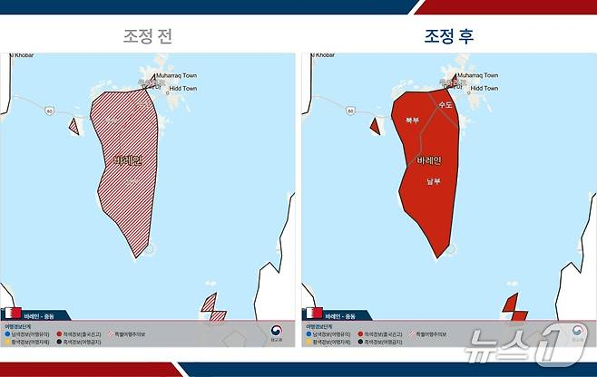 외교부는 8일 오후 7시 바레인·아랍에리미트(UAE)·오만·카타르·쿠워이트 전역과 사우디아라비아 및 요르단 일부 지역의 여행경보를 3단계 적색경보(철수 권고)로 상향했다.