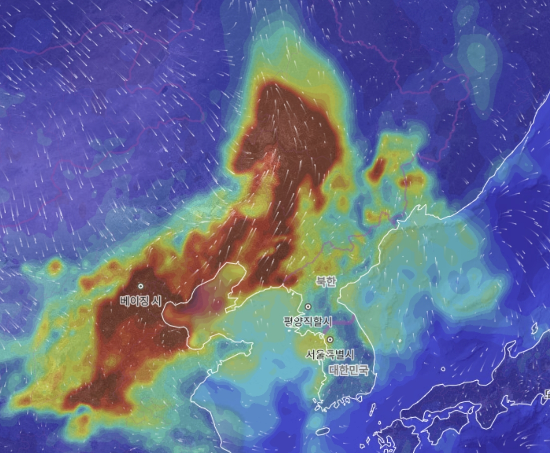 국립환경과학원이 지난 17일 제공한 천리안위성 2B호 촬영 영상엔 중국 랴오닝성과 지린성, 헤이룽장성 등 이른바 '동북 3성' 일대가 초미세먼지 100㎍/㎥ 이상을 의미하는 짙은 붉은색으로 뒤덮여 있는 모습을 확인할 수 있다.