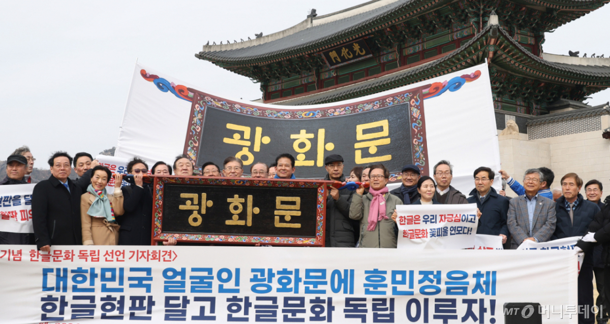 광화문 한글 현판 설치와 관련해 찬반 논쟁이 이어지고 있다. 한쪽에서는 국가 정체성을 강조하는 상징적 조치라는 입장을 내세웠지만 다른 한편에서는 역사적 맥락을 훼손할 수 있다는 우려를 제기했다.