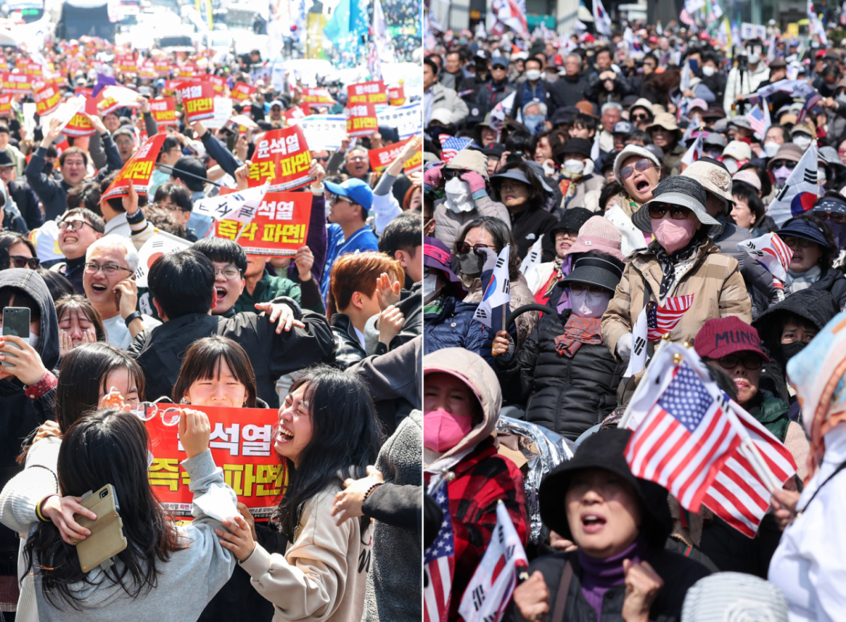 헌법재판소가 윤석열 전 대통령 파면을 결정한 지 한 해가 흘렀지만 이를 둘러싼 거리의 갈등은 여전히 현재진행형이다. 윤 전 대통령 탄핵 1년을 맞은 4일에도 서울 도심에서 찬반 집회가 이어진다.