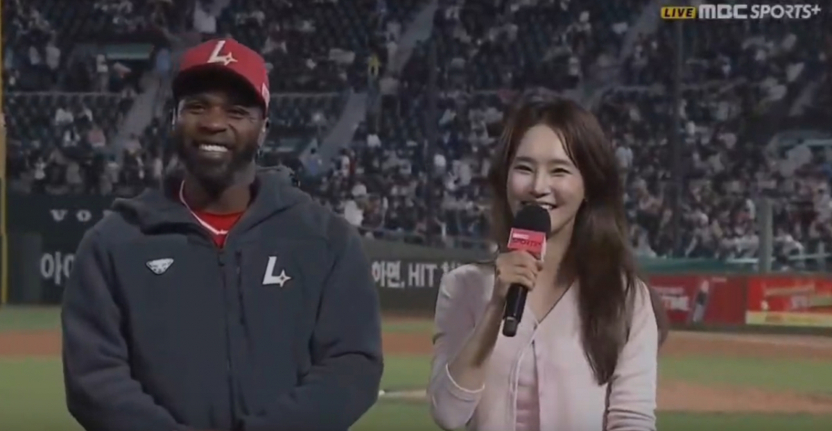 김 아나운서는 이날 경기 전 브리핑에서도 에레디아의 어눌한 한국어 발음을 따라 하며 노래를 부르기도 했다.