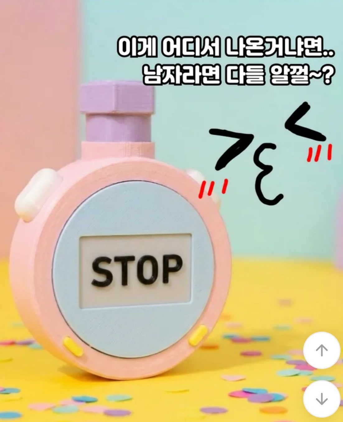 해당 상품은 최근 젊은 층 사이에서 유행하는 '클리커 키링'으로 소개돼 있으나 분홍색 본체에 보라색 손잡이, 가운데 'STOP'이라는 글자가 크게 적힌 모습이 일본 AV에 등장하는 소품과 상당히 유사하다.