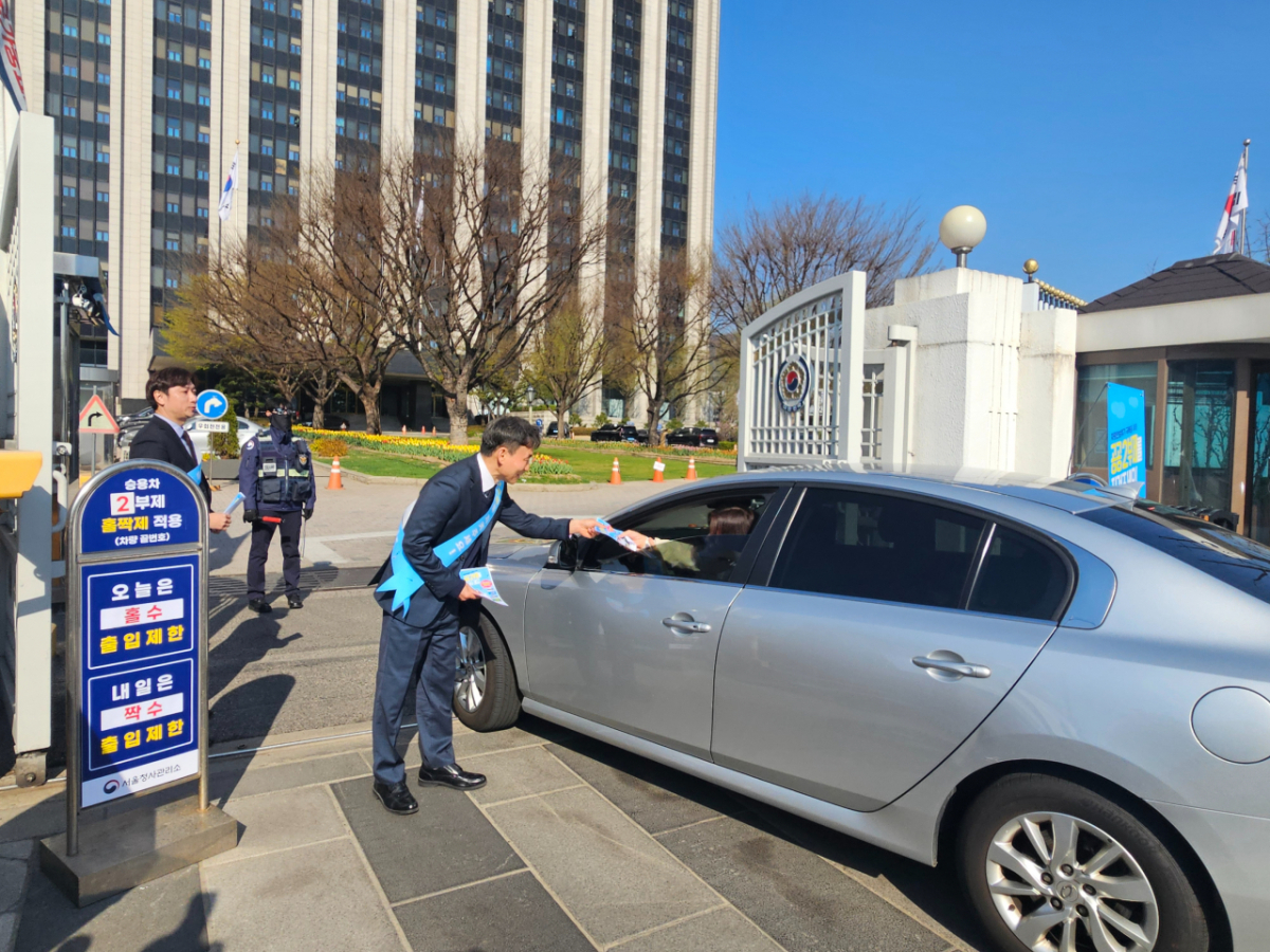 청사 관계자는 "날짜를 헷갈려 출입 제외 대상인 홀수 차량 번호를 단 직원이 오는 경우가 있다"며 "청사 안으로 들일 수 없어 다른 곳으로 안내하고 있다"고 말했다.
