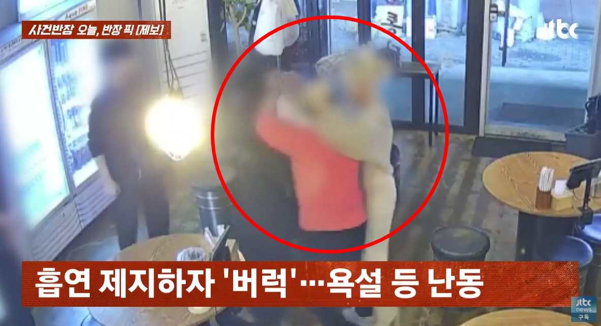 남성은 한바탕 난동 부린 후 또다시 실내 흡연을 시도했다. 이를 본 A씨는 뛰어와 담배를 빼앗았다. 이후에도 실랑이가 계속됐고 결국 경찰이 현장에 출동했다.