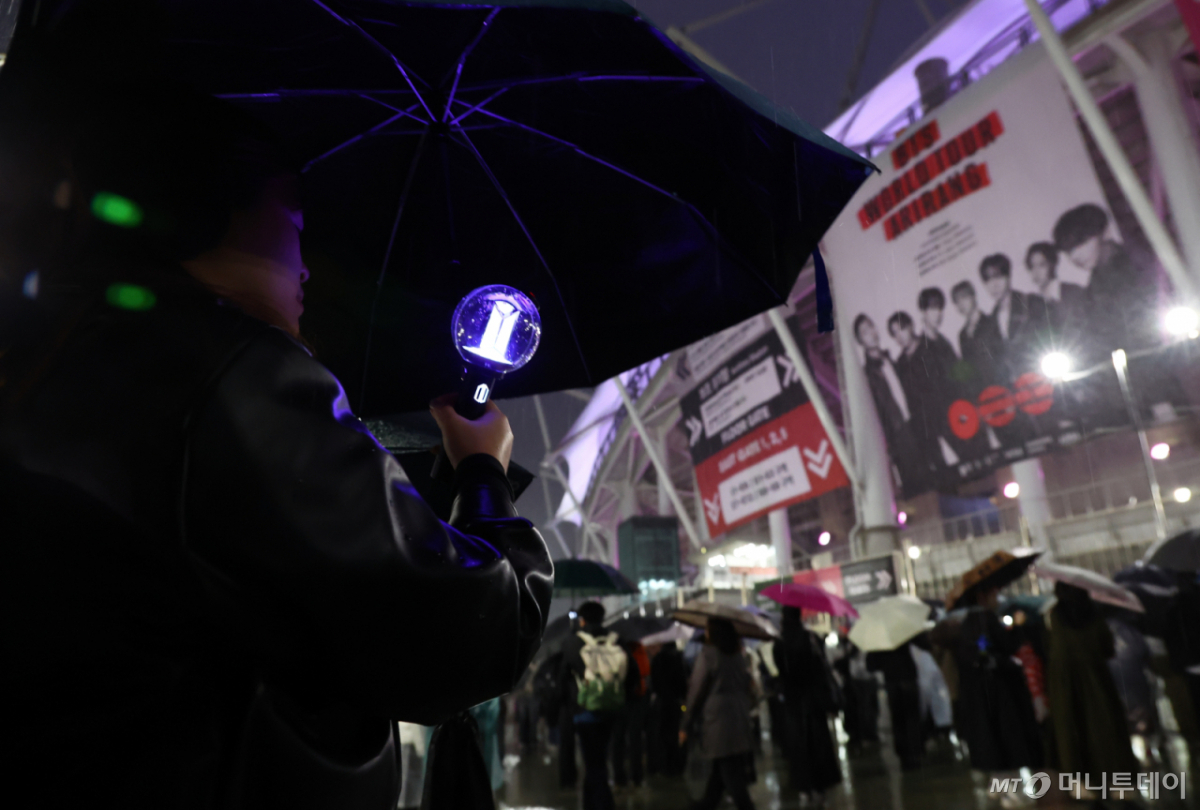 [고양=뉴시스] 황준선 기자 = 9일 오후 그룹 BTS(방탄소년단)의 월드투어 공연이 열린 경기 고양시 고양종합운동장을 찾은 팬들이 공연장 밖에서 공연을 듣고 있다. 2026.04.09. hwang@newsis.com /사진=황준선