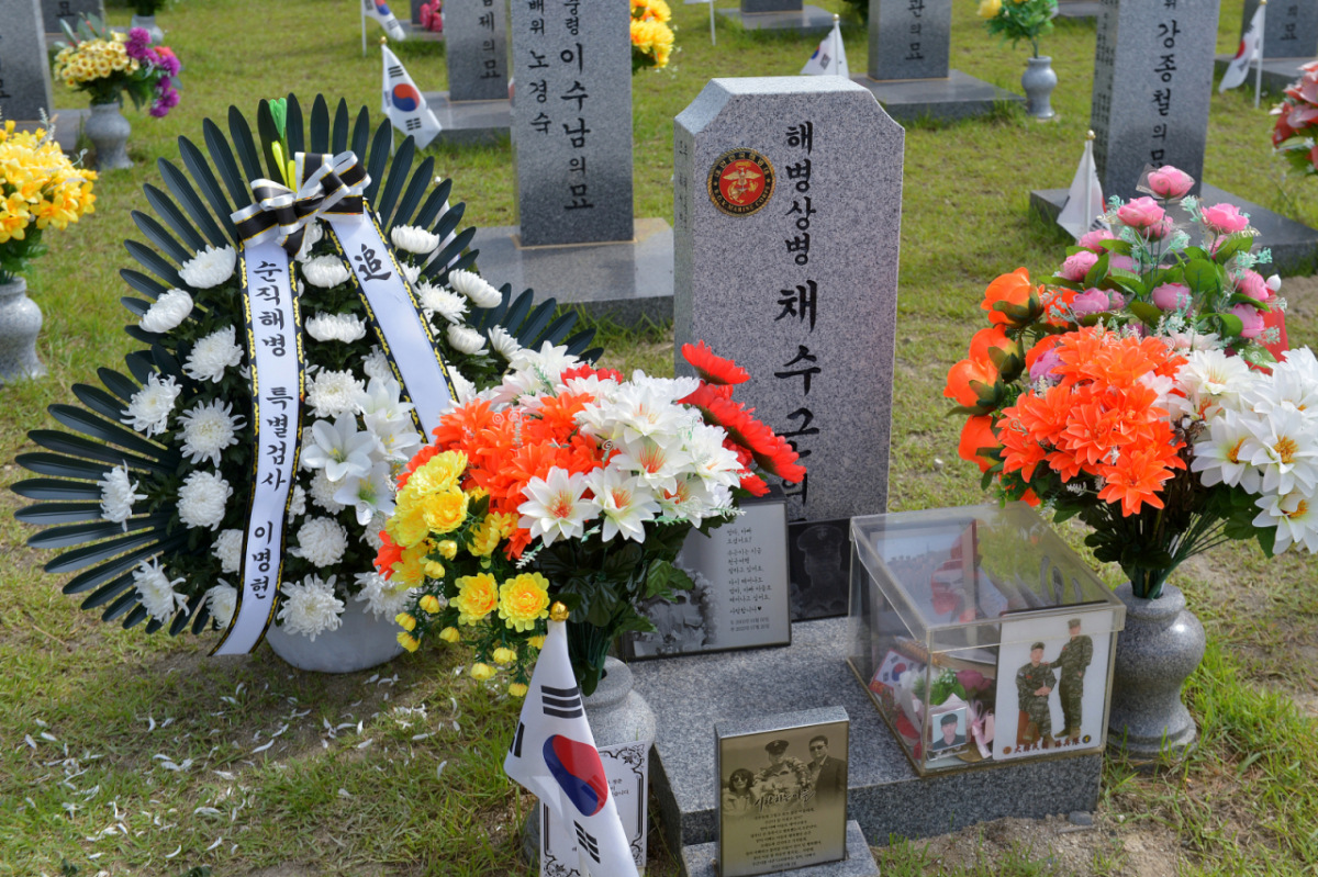 고 채수근 해병 유족들이 법정에서 "지휘관들 자식이었어도 가늠 안 되는 흙탕물에서 안전장비 없이 투입했을지 묻고 싶다"며 "(죽은 아들이) 너무너무 보고 싶다"고 밝혔다.