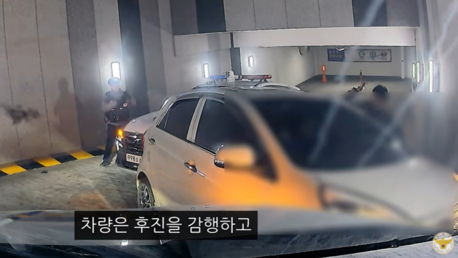 경차 운전자는 당황한 듯 계속해서 가속 페달을 밟았고, 이에 차량이 주차장 외벽에 반복해 부딪히는 상황이 연출됐다. 추격 중이던 경찰차가 뒤를 막아서자 경차는 후진을 시도하기도 했다.