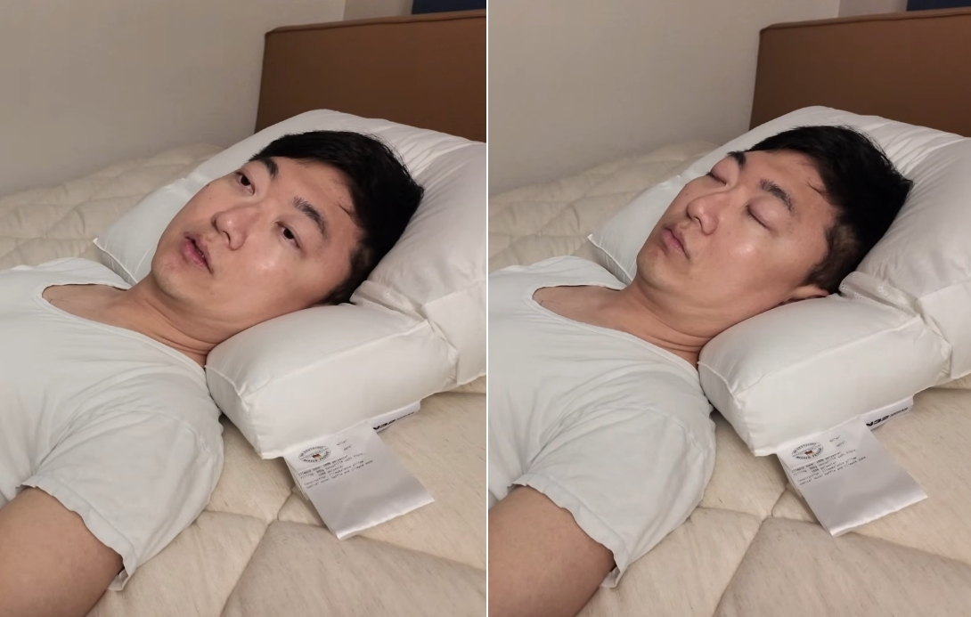그는 이어 "불면증이 쉽게 고쳐지지 않는다"면서도 말을 하다가 홍보하는 침대 위에서 편하게 잠들어 눈길을 끌었다.
