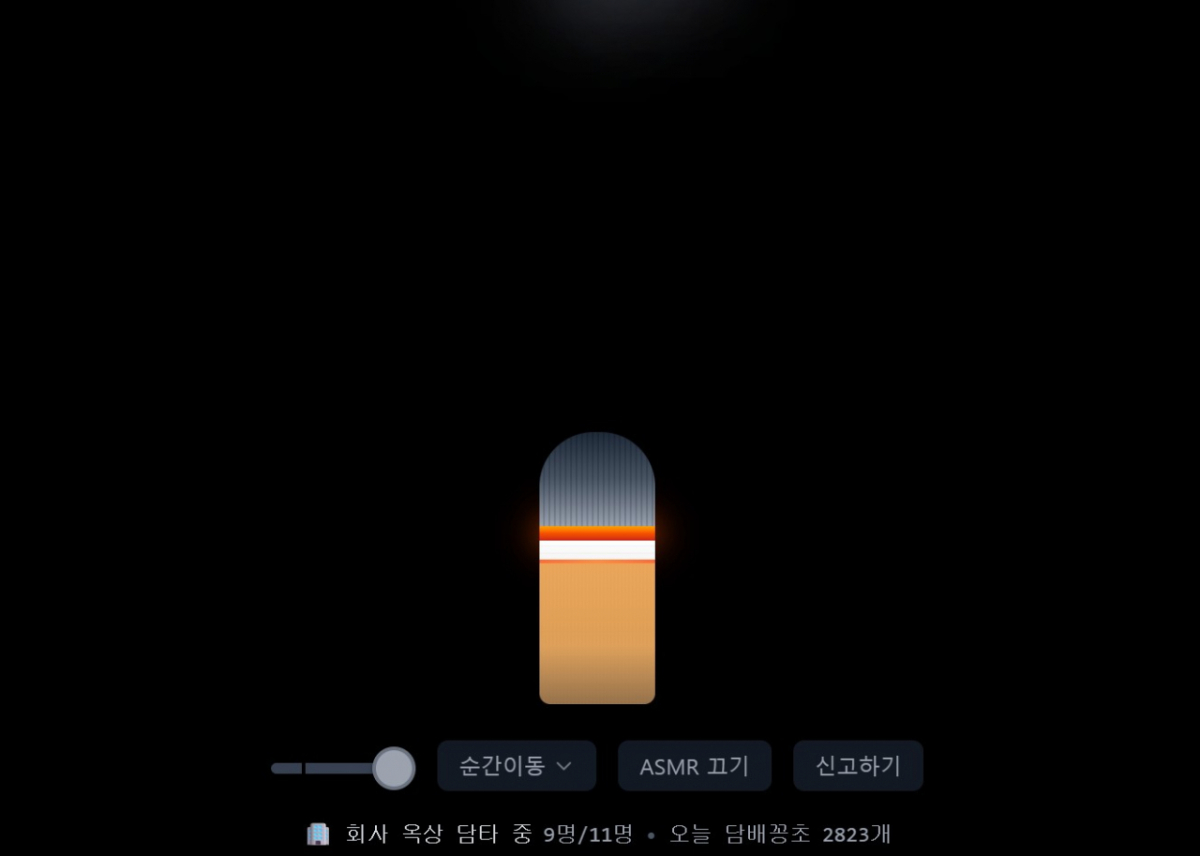 담배의 필터를 마우스로 클릭하고 있으면 담배가 더 빨리 타고, 끝부분을 더블클릭하면 재도 털 수 있다. 보통 3분 내외면 한 대를 피운다. 그 3분 동안 채팅창에는 이런 문장들이 흘러간다. "차장 보기 싫다." "우리 회사보다 빌런 많은 곳은 없다." "오늘 회의 3시간이었어요." "저도요." "저도요." 담배가 아니라 '공감'이 오간다.