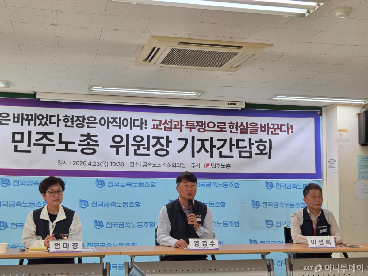 양 위원장은 이날 오전 서울 중구 금속노조 회의실에서 열린 기자간담회에서 이같이 말했다. 양 위원장은 이날 노란봉투법 시행 후 원하청 교섭 현황을 비롯해 기간제법·안전대책 등에 대한 입장과 7월 총파업 등 향후 투쟁 계획을 밝혔다.