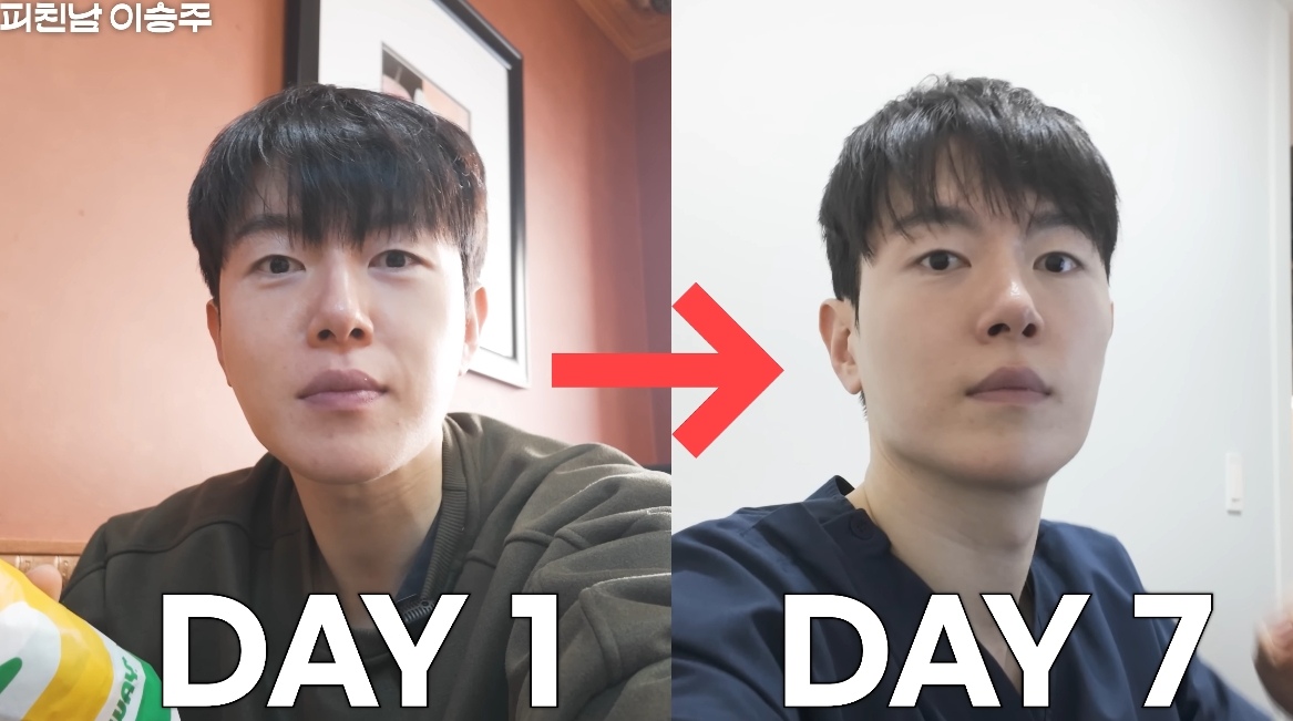 피부과 전문의 이승주 원장이 '피부 망치기 챌린지'와 '피부 끌올 챌린지'를 해 화제를 모았다. /사진=유튜브 채널 '피친남 이승주' 캡처