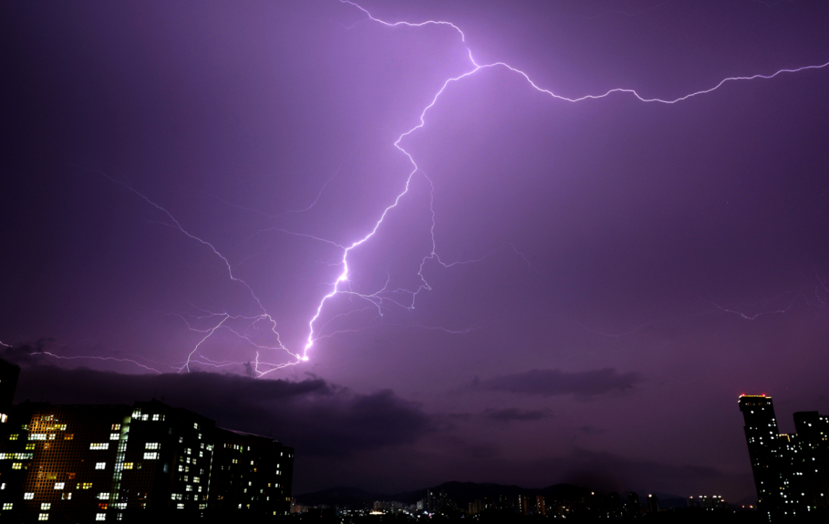 지난해 우리나라에서 낙뢰가 최근 10년간 평균보다 1.3% 많이 발생한 것으로 나타났다. 낙뢰는 여름철 집중됐다. 지역별로는 충청남도가 전체 발생 횟수의 26%를 차지하며 가장 비중이 컸다.