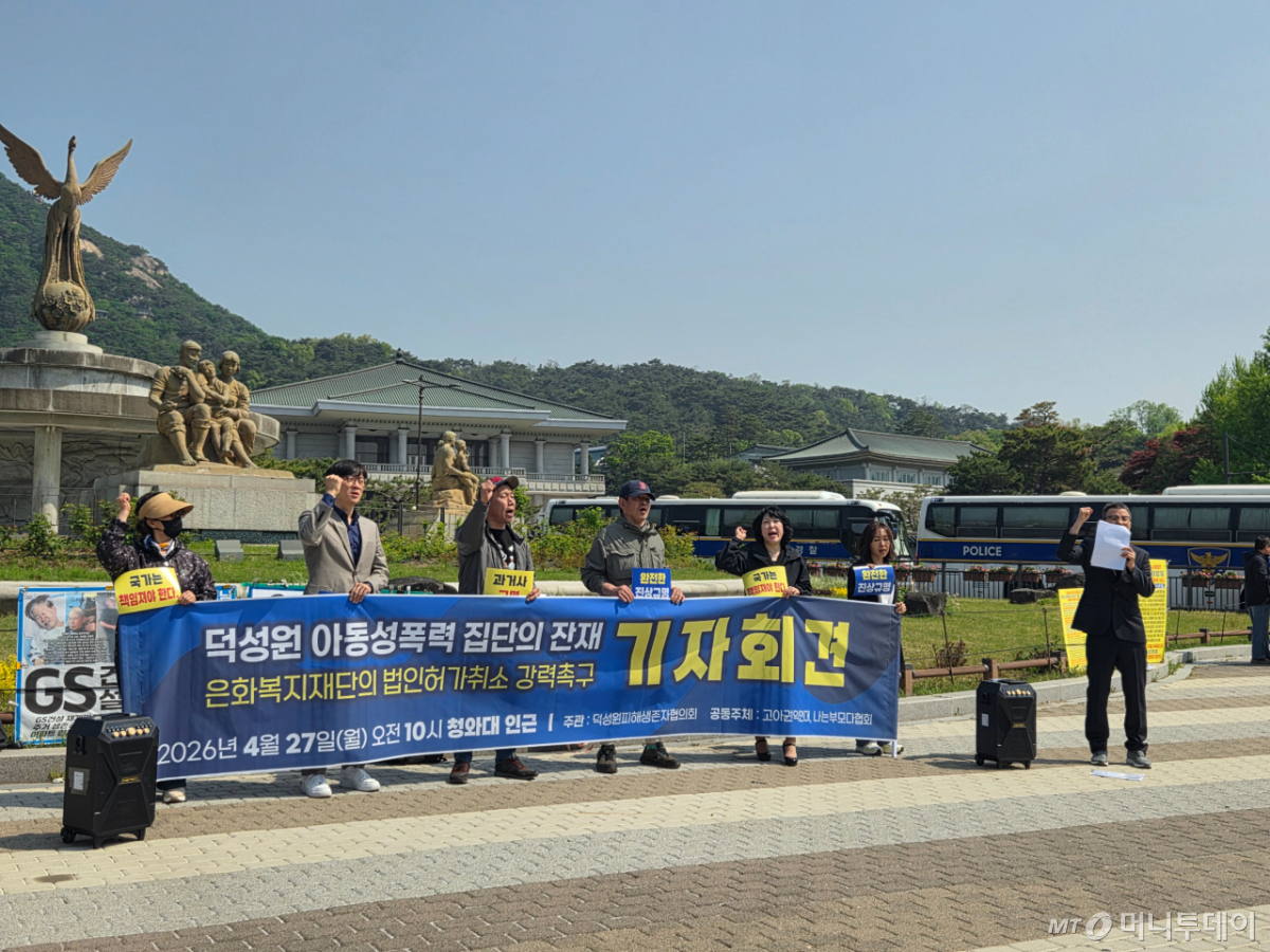 덕성원 피해생존자협의회와 고아권익연대, 나는부모다협회는 27일 오전 서울 종로구 청와대 분수대 앞에서 기자회견을 열고 "아동 성폭력 집단의 잔재인 은화복지재단의 설립허가를 취소하라"고 밝혔다.