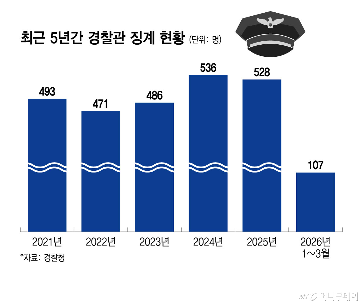 최근 5년간 매년 500여명의 경찰이 징계를 받은 것으로 나타났다. 경찰이 매년 대책을 내놓지만 비위사건이 끊이지 않으면서 실효성에 의문이 커진다. 수사권 조정 이후 확대된 권한에 걸맞은 통제장치가 필요하다는 지적도 나온다.