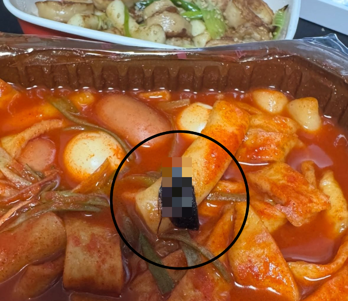 그는 "가게 측에서 떡볶이만 부분 환불 처리했다. 저는 정말 억울하다. 내 하루 돌려내라"며 사진 두 장을 공유했다. 사진을 보면 배달용기에 담긴 떡볶이에는 바퀴벌레로 추정되는 이물질이 담겨 있다. 조리 과정에서 혼입된 것으로 보인다.