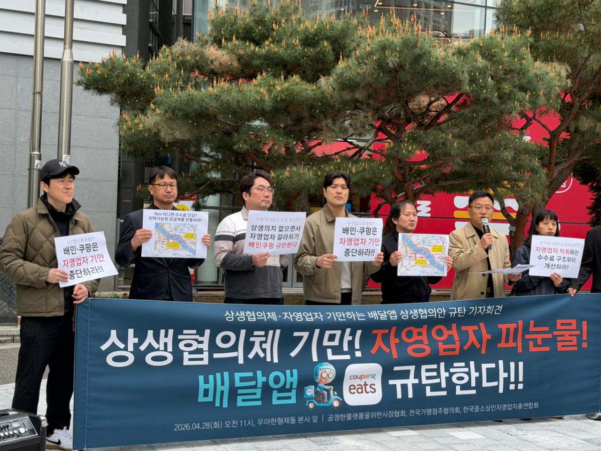 김준형 공정한플랫폼을위한사장협회 의장은 "플랫폼이 제시한 매출 구간은 국세청 기준이 아닌 배달앱 자체 내부 매출 기준"이라며 "이 구조에서는 배달 의존도가 높은 업종일수록 하위 구간에 포함될 수 없다"고 했다.
