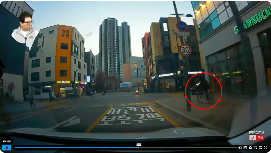 영상을 보면 한 어린이가 자전거를 타고 우측 인도를 달리고 있다. 그러다 보도블록이 설치된 길이 끊어지자 갑자기 그대로 도로로 돌진한다. 차량은 우측에서 갑자기 나타난 자전거와 그대로 충돌했다.