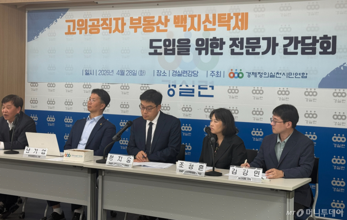 경제정의실천시민연합(경실련)은 28일 서울 종로구 경실련 강당에서 '고위공직자 부동산 백지신탁제 도입'에 대한 전문가 간담회를 열고 "국회에 법안 수정 제안서를 제출하고 입법을 촉구할 것"이라고 밝혔다.