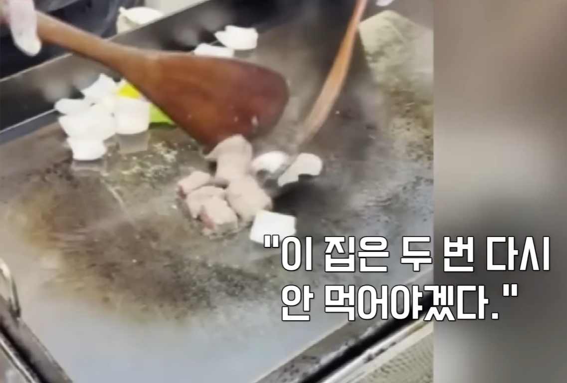 A씨가 주문한 음식을 기다리는 사이 한 남녀 손님도 해당 노점을 찾았다. 이들은 상인이 고기 굽는 모습을 보며 "(3000원어치 치고) 양이 너무 적은 거 아니냐", "이 집은 두 번 다시 안 먹어야겠다" 등 불만을 쏟아내기 시작했다.