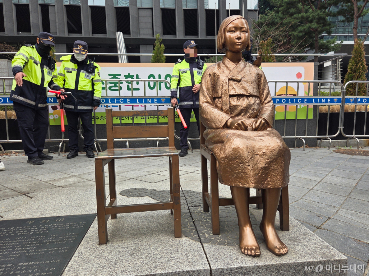 28일 서울 종로경찰서에 따르면 경찰은 다음달 6일 서울 종로구 옛 주한 일본대사관 앞 소녀상을 둘러싼 바리케이드의 전면 철거를 검토 중이다. 당일에는 '제1751차 일본군 성노예제 문제해결을 위한 정기 수요시위'가 열릴 예정이다.
