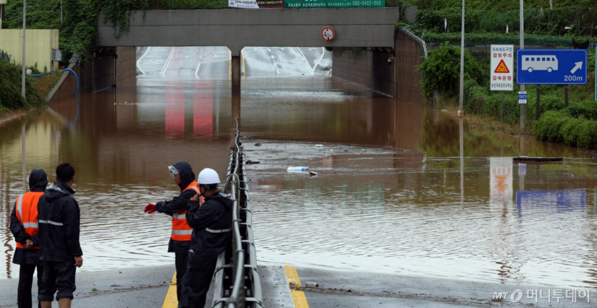 ![[세종=뉴시스] 강종민 기자 = 세종시 전의면의 지하차도가 17일 폭우로 침수돼 관계자들이 양수기를 활용한 물빼기 등 복구작업을 벌이고 있다. 2025.07.17. ppkjm@newsis.com /사진=강종민](https://thumb.mt.co.kr/cdn-cgi/image/f=avif/21/2026/04/2026042909355679137_1.jpg)