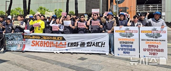 그러면서 "함께 성과를 만들어냈음에도 하청 노동자들을 소모품 정도로 취급하는 것"이라며 "이러한 차별은 상대적 박탈감을 가지게 한다. SK하이닉스는 하청 노동자들 절규와 외침을 외면하지 말고 생존권을 보장해 달라"고 촉구했다.