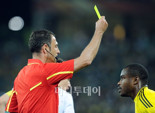 [더반(남아공)=머니투데이/OSEN 공동취재단]2010 남아공월드컵 B조 3차전 한국-나이지리아의 경기가 열린 23일(한국시간) 새벽 더반 모세스 마비다 스타디움에서 전반 나이지리아의 골키퍼 엔예아마가 경고를 받고 있다. 독자들의 PICK! 홍서범·조갑경, '아들 불륜' 사과…"양육비·위자료 빨리 주도록 할 것" '4년만 복귀' 이휘재, 풀죽은 모습…"잘 지냈다면 거짓말" 이하이 "도끼, 하나뿐인 내 남자" 열애 인정…"두 사람 지금 미국에" 월 700만원 벌어도..."생활비 30만원, 한국인 남편 짠돌이"