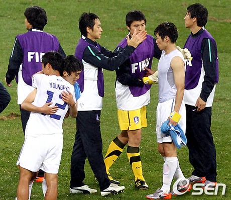 그라운드를 빠져나왔지만 모두 흐르는 눈물을 멈추지 못했다. 선수들은 서로를 안아주며 위로를 했고 그렇게 경기장을 빠져 나갔다. 한국의 패배를 아쉬워 하듯 비는 끊임없이 내렸다.