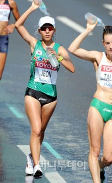 여자 20㎞ 경보에 출전한 전영은(23·부천시청)이 자신의 시즌 최고 기록인 1시간35분52초로 26위에 올랐다.