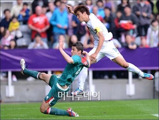 전반 38분 한국은 이날 가장 좋은 장면을 만들었다. 박주영이 페널티 에어리어 정면에 서 있던 김보경에게 패스를 찔러줬고, 이 공을 김보경이 구자철에게 내준 뒤 구자철이 오른발 슈팅을 때렸지만 수비수에 걸리며 튀어나왔다.