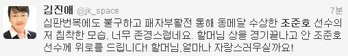 한편 경기 직후 조준호는 할머니의 사망 소식을 뒤늦게 전해들은 것으로 알려져 트위터리안들의 안타까움을 사고 있다.