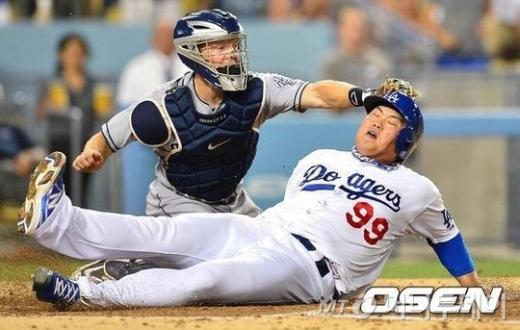 당시, 류현진은 2사 2루에서 타석에 나와 동점타를 친 뒤 푸이그의 좌전 안타 때 과감하게 홈으로 쇄도했다. 홈에서 대접전이 벌어졌고, 급기야 슬라이딩까지 시도하며 역전 득점에 성공했다.