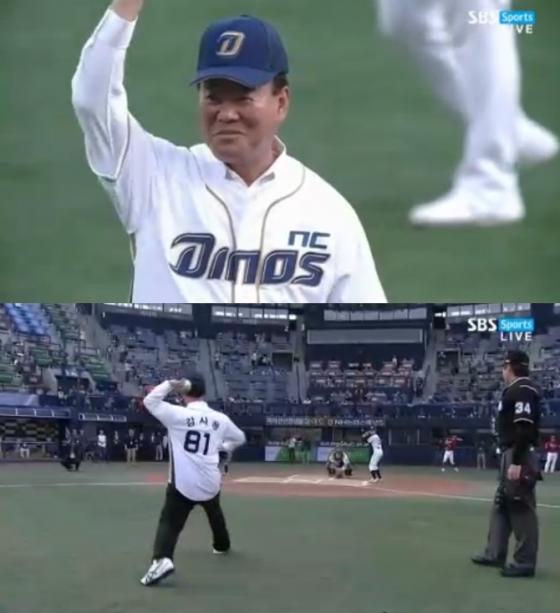 감 감독은 15일 창원 마산구장에서 열린 '2014 한국야쿠르트 세븐 프로야구' NC와 KIA의 경기에 앞서 시구를 했다. 이날 감 감독은 NC 오정복의 초등학교 시절 야구 은사 자격으로 시구에 나섰다.