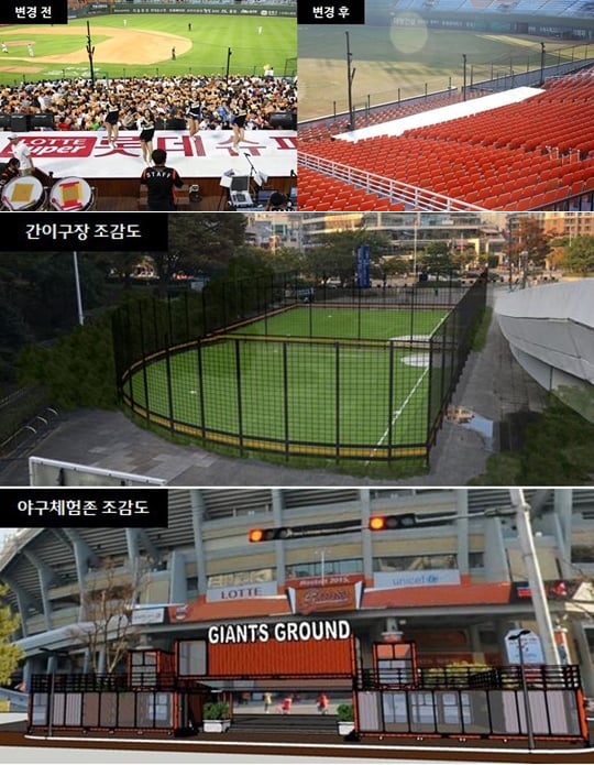 롯데자이언츠는 현재 사직야구장 광장에 컨테이너 형태의 건물을 설치하여 야구 체험존을 운영하고, 기존 상품매장을 외부로 옮긴 후 해당 공간에 팬들이 이용 가능한 휴게시설을 마련할 계획이다. 또 티볼 등 간단한 프로그램이 가능한 간이 구장을 설치하는 방안도 함께 검토하고 있다.