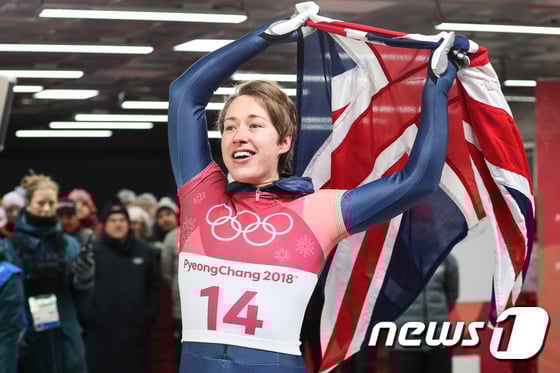 = 리지 야놀드(영국)가 17일 강원도 평창군 올림픽슬라이딩센터에서 열린 2018 평창동계올림픽 스켈레톤 여자 4차 주행에서 금메달을 확정지은 후 국기를 들고 환호하고 있다. 정소피아는 1~4차 주행 합계 3분29초89로 15위를 기록했다. 2018.2.17/뉴스1 <저작권자 © 뉴스1코리아, 무단전재 및 재배포 금지> 독자들의 PICK! 윤미래, 뒤늦게 알려진 사망 소식..."긴 여행 떠나" 동서와 갈등→파혼 2번 아내..."조카는 남편 아이" 의심 충격 추성훈, '파격' 누드 화보 공개…"돈 안 받아, ♥야노 시호도 촬영" "남성 의사가 은밀한 곳 봤잖아" 이혼 선언…산부인과서 난동