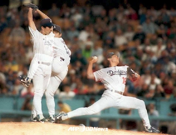 2위에는 박찬호(47)와 함께 LA 다저스에서 활약했던 노모 히데오가 뽑혔다. 노모 히데오 역시 토네이도 스타일로 상체를 크게 젖힌 뒤 온몸을 비틀어 던지는 투구 폼으로 유명했다. 노모는 1995년 신인왕을 받은 뒤 메이저리그에서 두 차례 노히트노런을 기록하는 등 개인 통산 123승으로 활약했다.