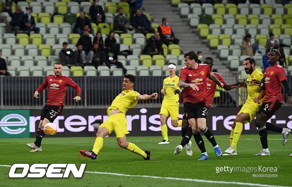 비야레알은 27일(한국시간) 오전 폴란드 그단스크 미에스키 스타디움서 열린 2020-21 UEL 결승전서 맨유에 1-0으로 리드한 채 전반을 마쳤다.