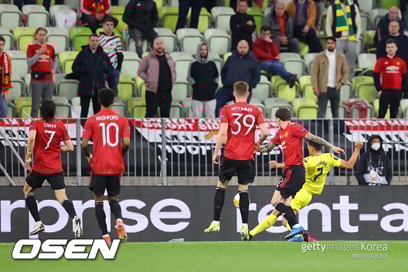 수세에 몰렸던 비야레알이 세트피스서 선제골을 뽑아냈다. 전반 29분 프리킥 찬스서 파레호의 크로스가 올라오자 간판 공격수 모레노가 쇼, 바이, 린델로프 등 맨유 수비진을 헤집고 오른발 선제골을 터뜨렸다.