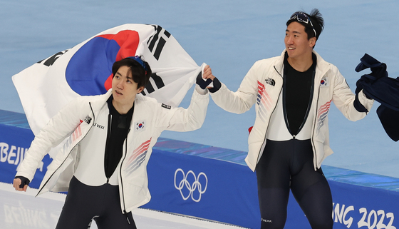 대표팀 차민규 선수는 지난 12일 남자 500m 경기에서 은메달을 확정짓자 동료 김준호와 함께 태극기를 들었다. 두 선수 역시 지퍼를 내린 채였다.