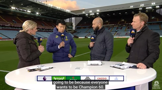 지난 10일, NBC스포츠는 유튜브를 통해 손흥민과 인터뷰 영상을 올렸다. 손흥민은 이날 열린 애스턴빌라와 원정경기에서 해트트릭을 터뜨려 팀의 4-0 대승을 이끌었다.