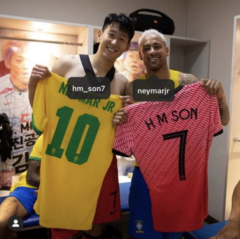 2일 경기 후 네이마르는 자신의 인스타그램 스토리에 손흥민과 함께 찍은 사진을 공개했다. 손흥민과 네이마르가 서로의 유니폼을 들고 활짝 웃는 모습이 담겼다. 네이마르는 이 사진에 손흥민의 아이디를 태그하고 'crack'이라는 단어와 손뼉을 치는 이모티콘을 남겼다. 'crack'은 축구에서 경기 흐름을 바꾸는 스타 플레이어를 의미한다.